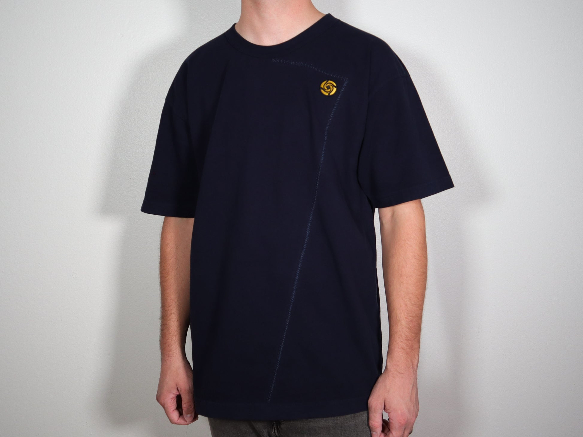 - Embroidered left chest design, speciality sewn front seam